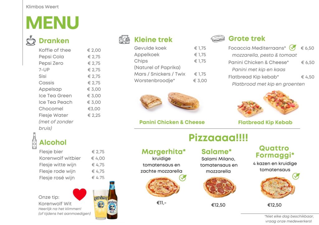 We bieden verschillende drankjes, ijsjes en alles voor de kleine en grote trek aan! Neem vooral eens een kijkje op ons menu! Nieuw zijn onze pizza’s! Een pizza om samen te delen is altijd een goede keuze!